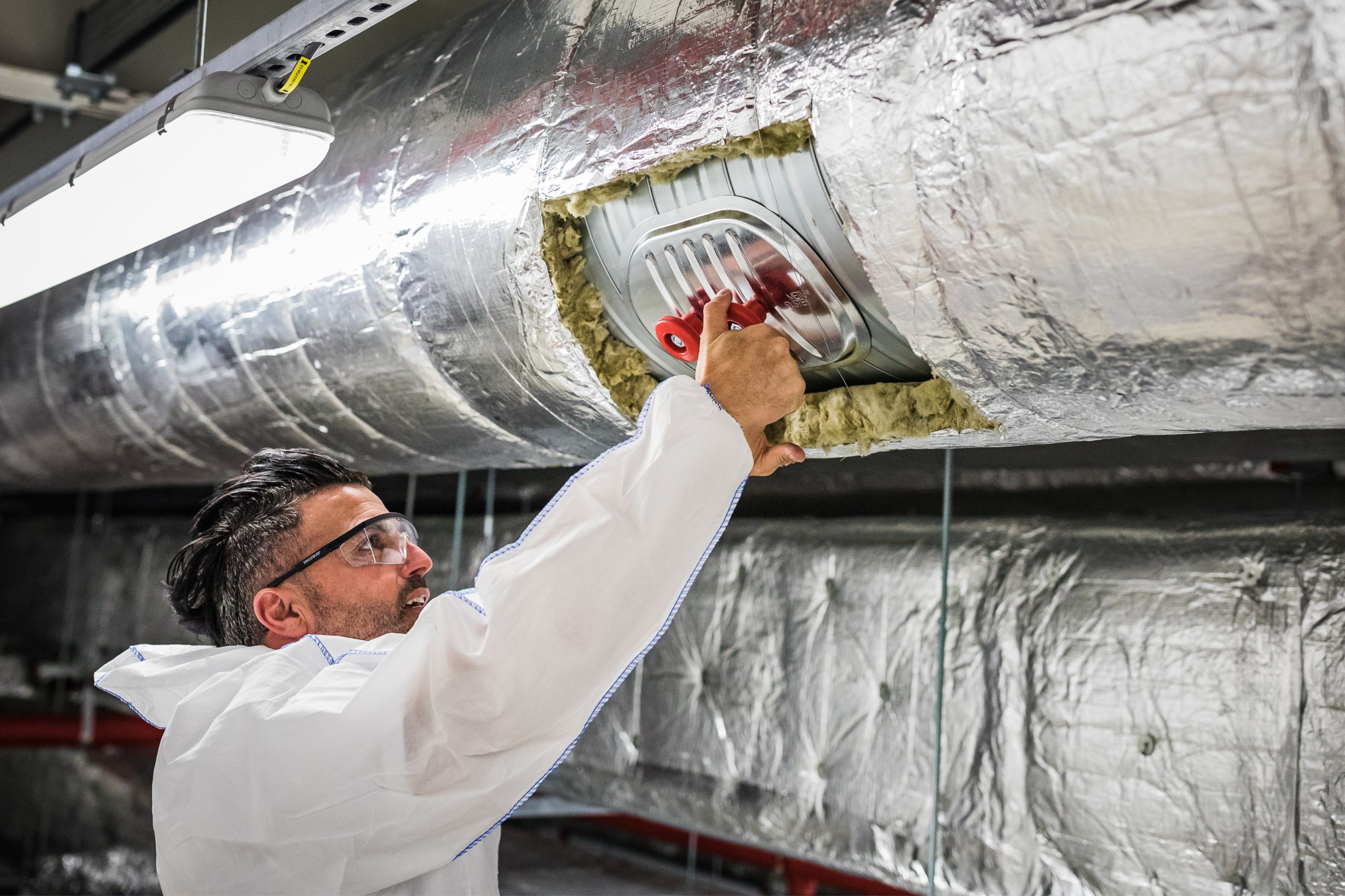Dat intrigeerde hem: “Ik dacht: dit is iets waar een gemiddelde gebruiker nog niet bewust van is, maar dat gaat zeker komen.” Wat hij vervolgens ontdekte, was een markt waarin alles ogenschijnlijk goed geregeld lijkt. Gebouwen worden ontworpen volgens geldende normen, installaties geplaatst, systemen draaien. Filters worden tijdig vervangen en storingen verholpen, maar de luchtkanalen zelf blijven buiten beeld. Juist daar hoopt vervuiling zich op, neemt de efficiëntie af en ontstaan risico’s die niemand direct ziet, maar wel ondervindt. Sven vat het treffend samen als hij zegt dat je “eigenlijk al 3-0 achterstaat” zodra je ervan uitgaat dat het systeem vanzelf blijft werken zoals het oorspronkelijk bedoeld is.